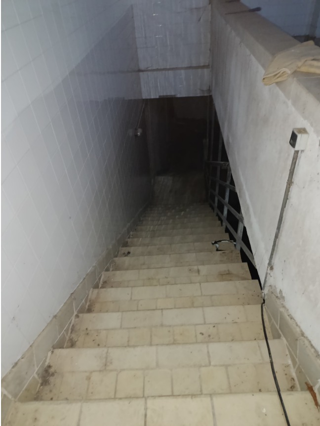 Amplio sótano de antigua fábrica de quesos, ideal para escenas de terror/suspense/misterio: techos elevados, tenue iluminación de día + iluminación artificial, salidas de ventilación reglamentarias. Varias cámaras diáfanas con puerta, otras cámaras con escaleras y antiguo equipamiento para la elaboración de los quesos, puente grúa.