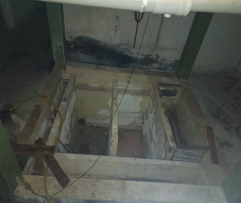 Diversas escaleras metálicas, larga escalera de bajada. Maquinaria. Antiguo montacargas. Aún se conservan las piscinas de salazón. Pozo.
